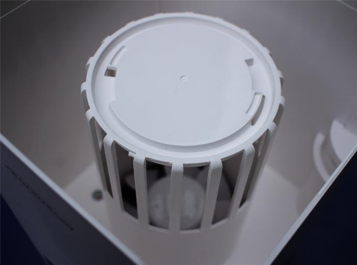 顶部看上去觉得有点复杂,感觉是各种横七纵八的线。其实是这款很大一个特点。可以直接上加水,中间注水口正对着过滤材料,实现五重过滤后直接使用自来水加湿的效果,当然了直接用纯净水肯定更好。