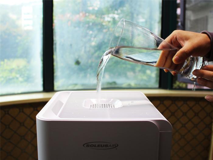 因为是冷蒸发加湿,需要风扇助力将空气从下至上吹入,舒乐氏在机器底部还加了一个初效尼龙滤网,初步拦截地面或者桌面的灰尘和毛发,养宠家庭也可以放心使用了。