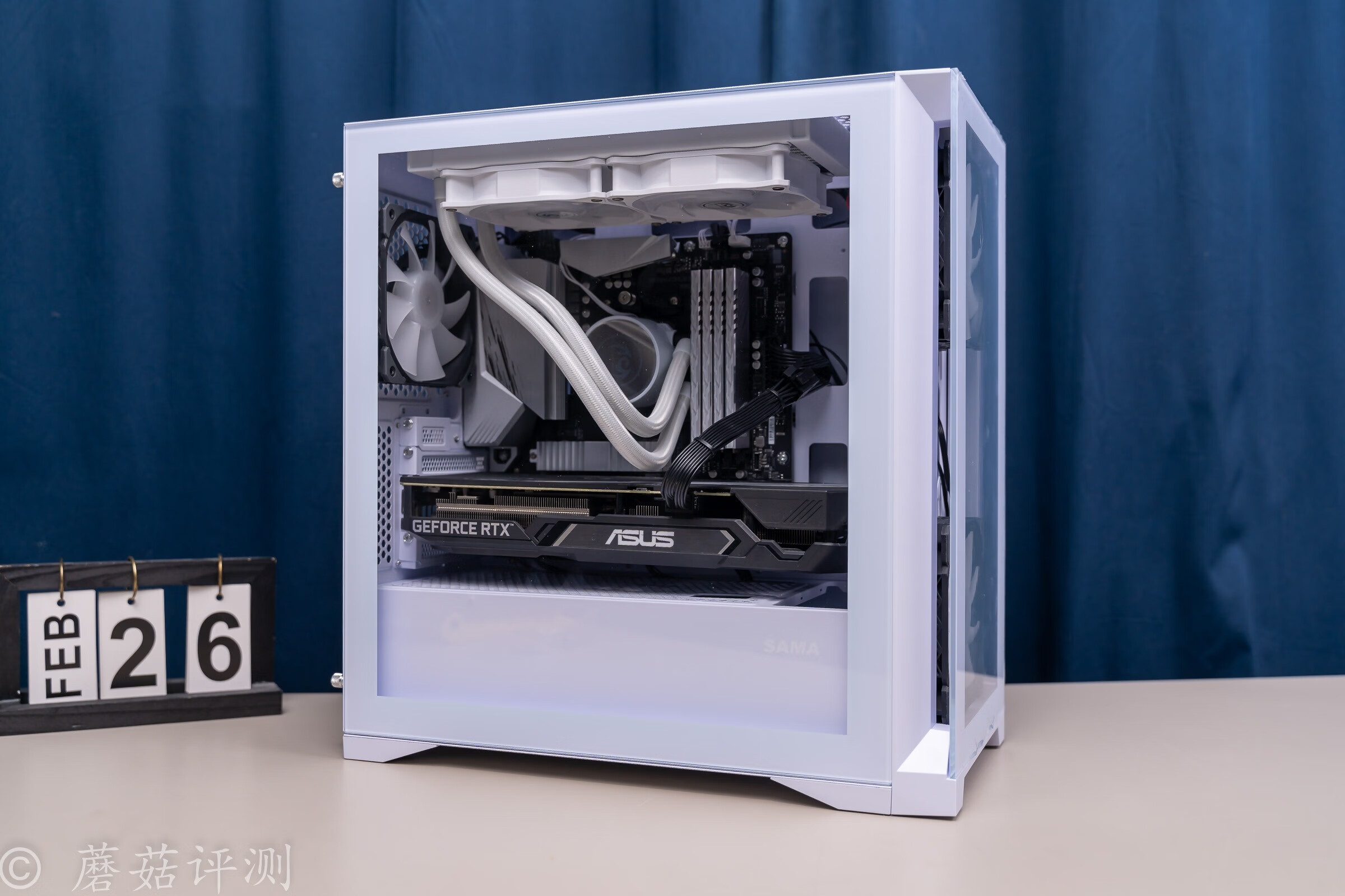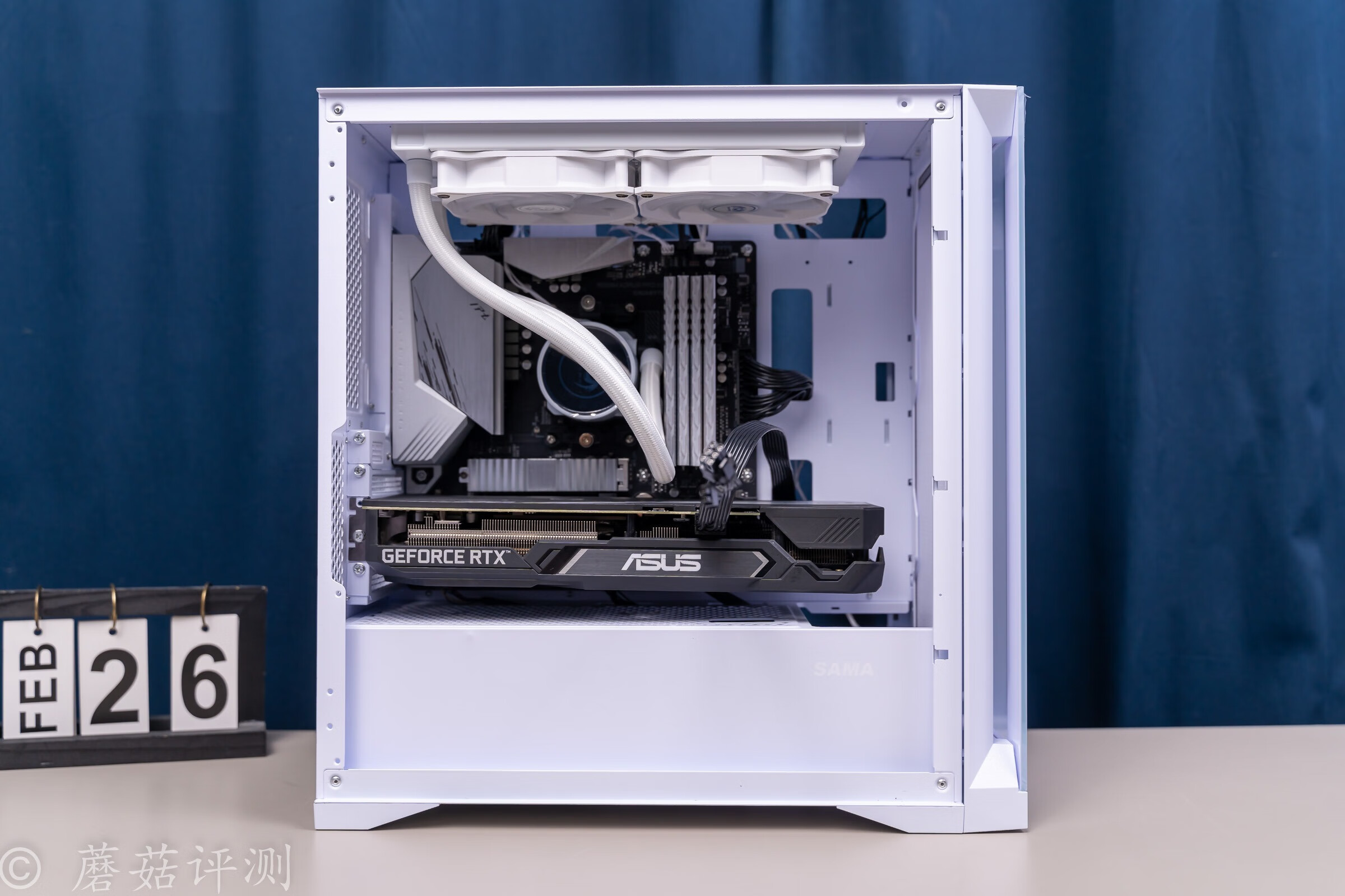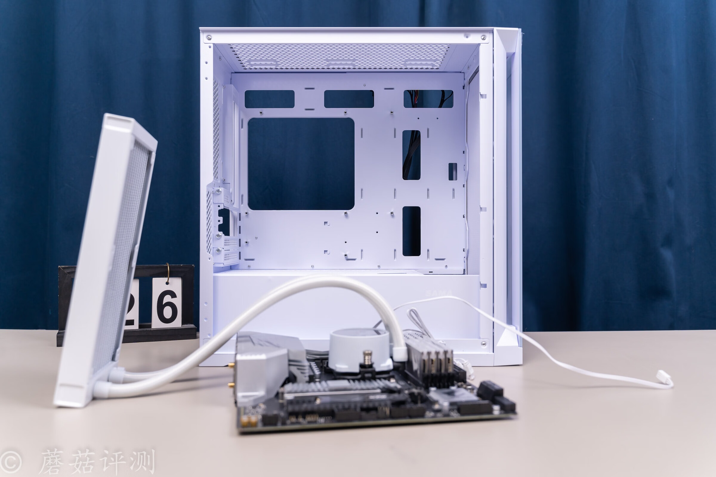 ▼主板固定在左侧,水冷排安装在机箱的顶部。