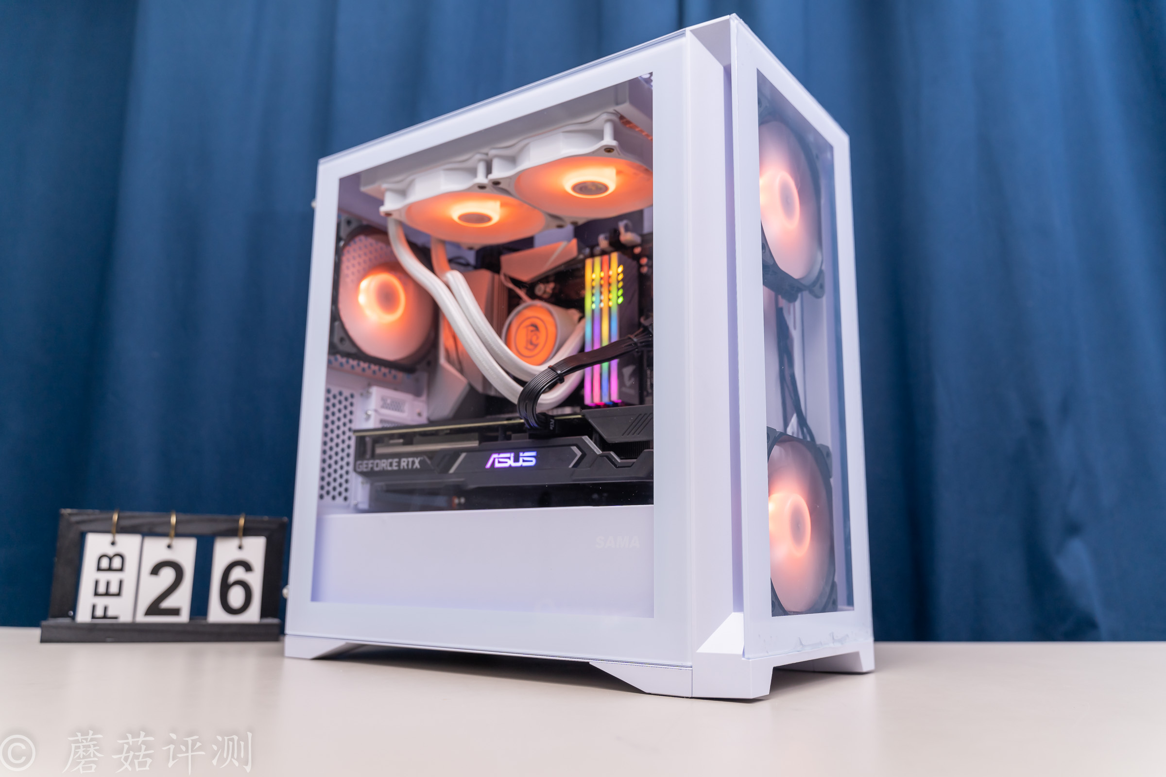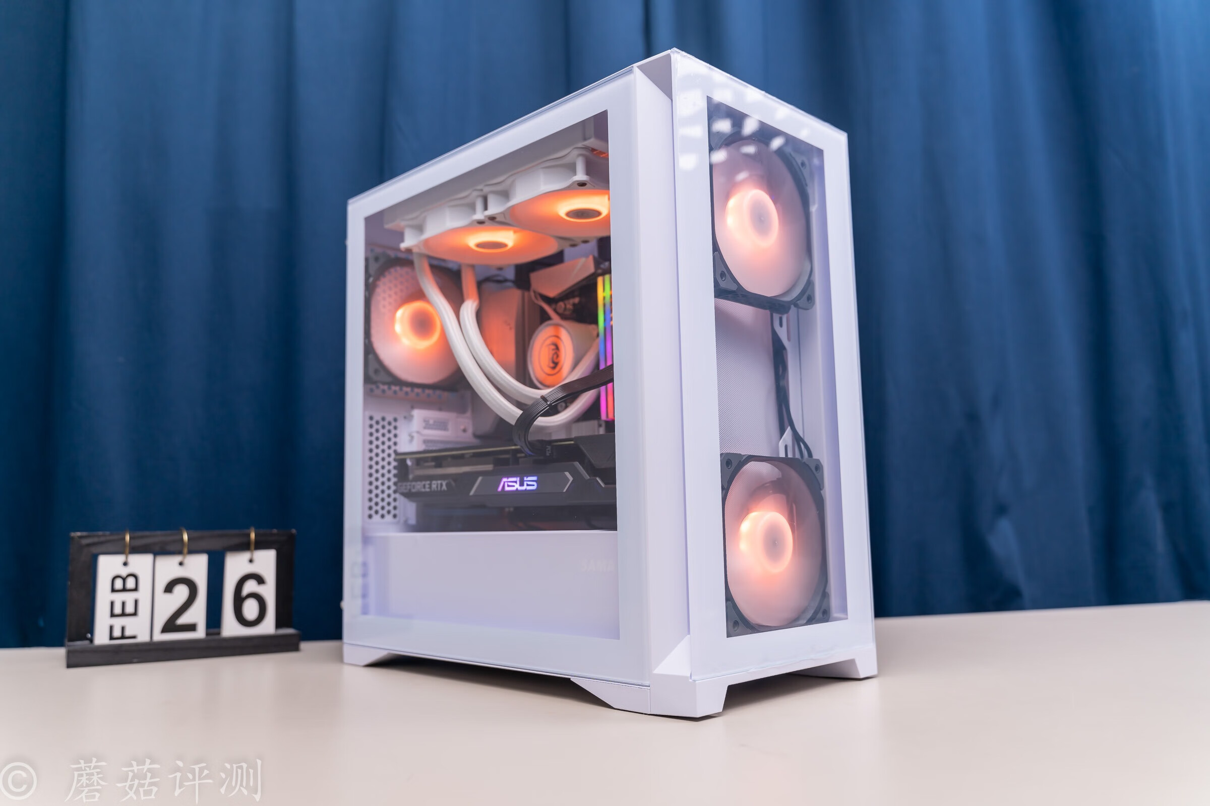 ▼冷排风扇部分,纯白的,扇叶是乳白色的,有柔光效果。