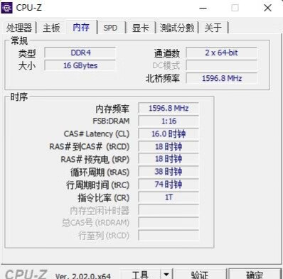 ▼内存稳定在3200MHz,时序16-18-18-38。