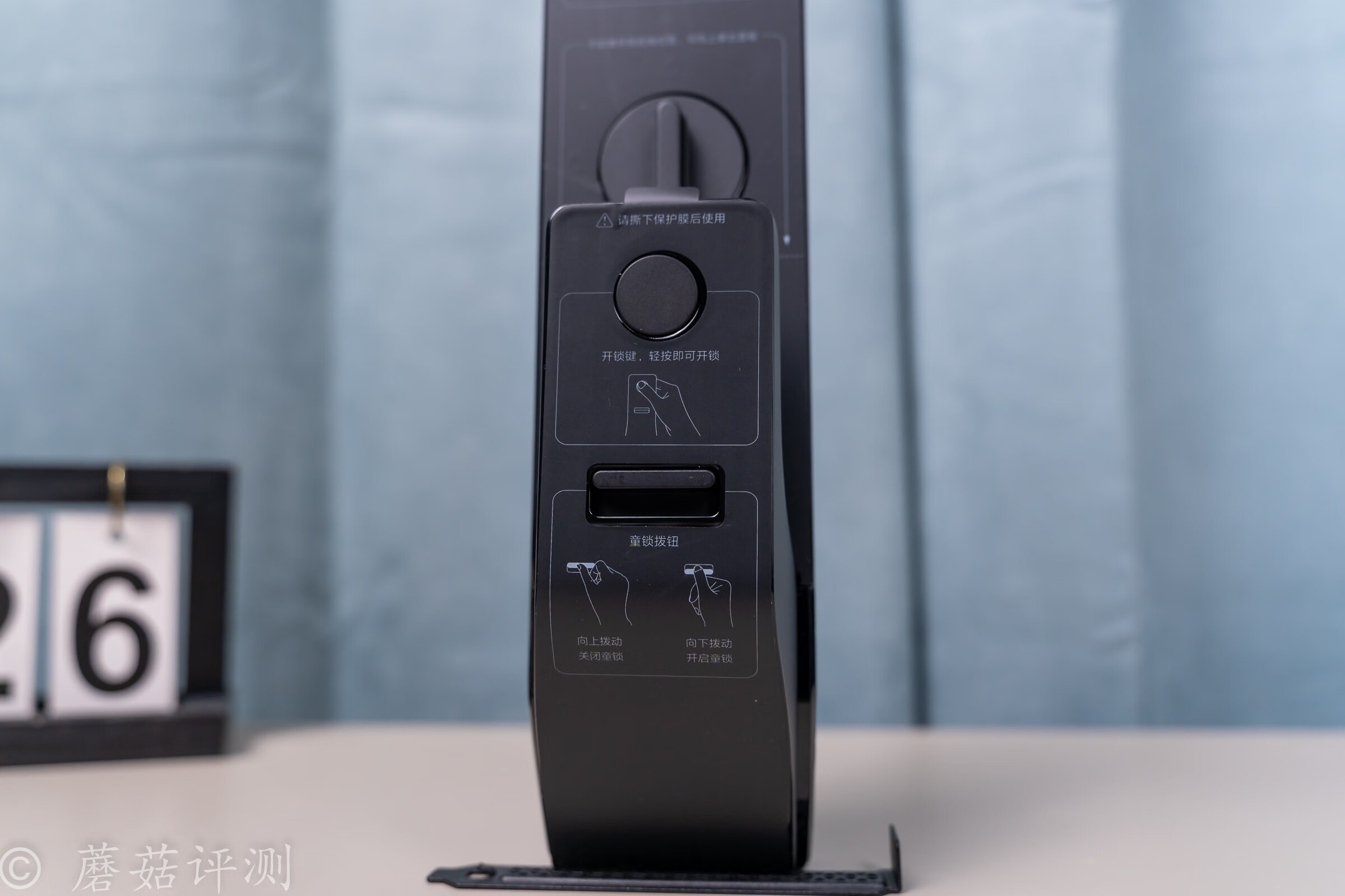 ▼锁体正面贴有保护膜,可以有效的保护锁体正面,防止划伤。保护膜的正面还有各种提示,告诉用户门锁的相关功能,非常直观。