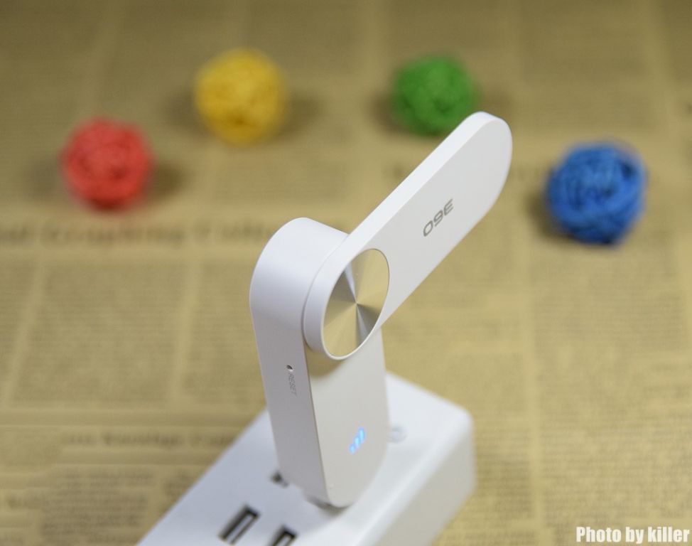 360WiFi扩展器侧面还有RESET恢复出厂按钮。按钮兼具指示灯功能,柔和的蓝色灯,常亮或闪烁显示工作和未连接状态。