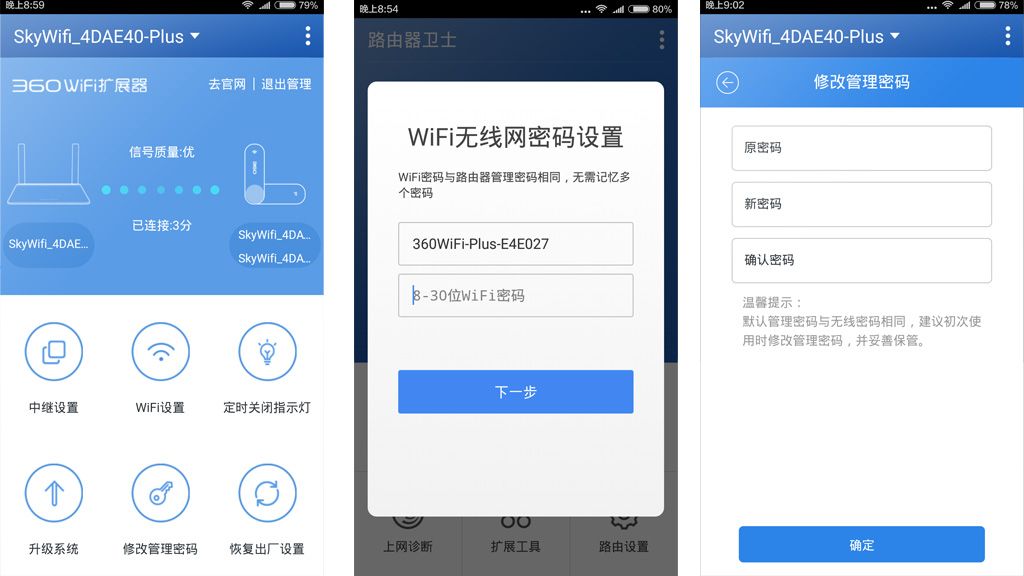 和普通路由器的设置相仿,相信有点经验的用户会驾轻就熟的,主要设置WiFi热点的选项,对扩展器进行密码管理,开关指示灯,进行系统固件升级等,所见即所得。值得一提的是,可以添加多个扩展器,理论上可以实现无限扩展,这样意味着无死角覆盖。
