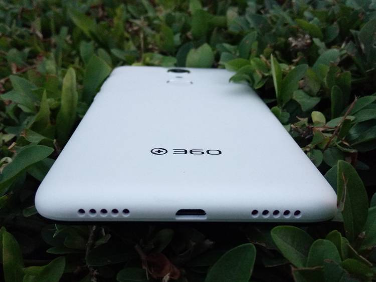 360手机N4整体设计都贯彻着古典圆润对称之美。听筒处设计成新颖的圆形,使得手机的整体更加的圆润对称。在听筒两边对称分布着光/距离传感器、补光灯、前置摄像头、指示灯(自左至右)。