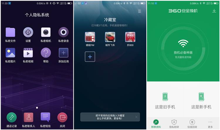 另外,360 OS的丰富功能不可枚举,个人隐私系统、财产隔离系统、冷藏室等都是非常实用和给人无限遐想的功能。
