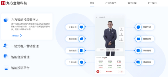 九方智投凭借多年证券行业数据积淀与金融科技研发积累,携手华为云和科大讯飞,推出业内首款证券投资数字人产品——九方智能投顾数字人“九哥”,可为用户客观提供全方位的股票诊断和市场分析结果,是用户专属的智能投顾专家。