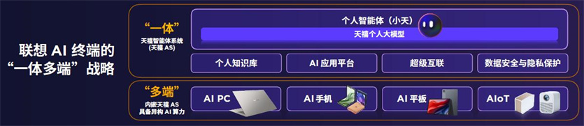 “‘一体多端’战略和发展理念,目标只有一个,那就是让用户在工作、学习和生活的不同场景下,都能获得‘个人AI助理’新体验。”除了在以“一体多端”战略领跑AI PC、AI手机、AI平板和AIoT等“AI内嵌的智能终端”外,联想还在“AI导向的基础设施”和“AI原生的方案服务”领域取得了明显突破,三者共同推进着联想的“全栈AI”战略布局。