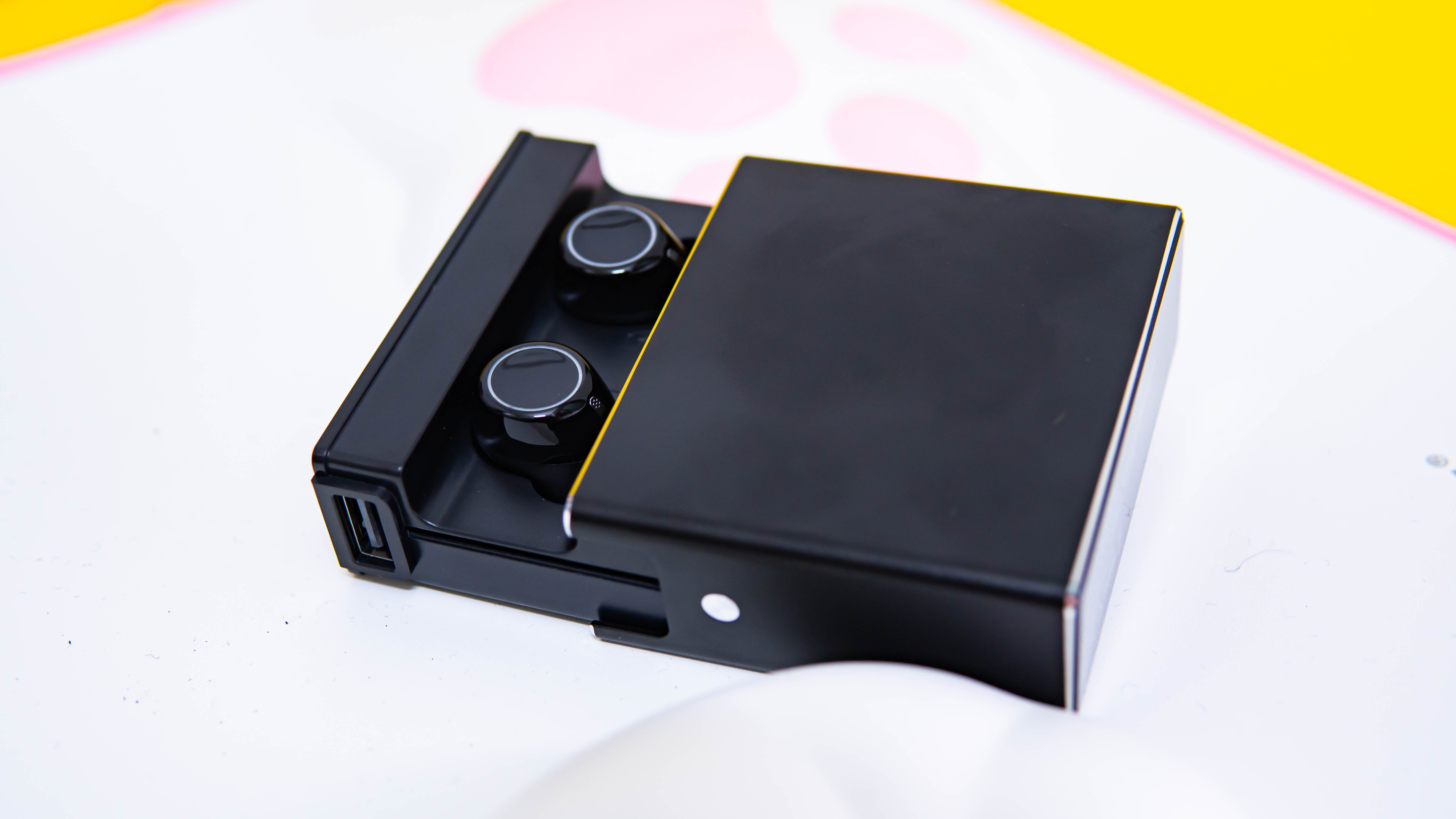 充电仓同样采用和外包装一样的抽屉式设计,取放便捷,充电仓还带有一定的磁力,防止抽拉结构滑出。