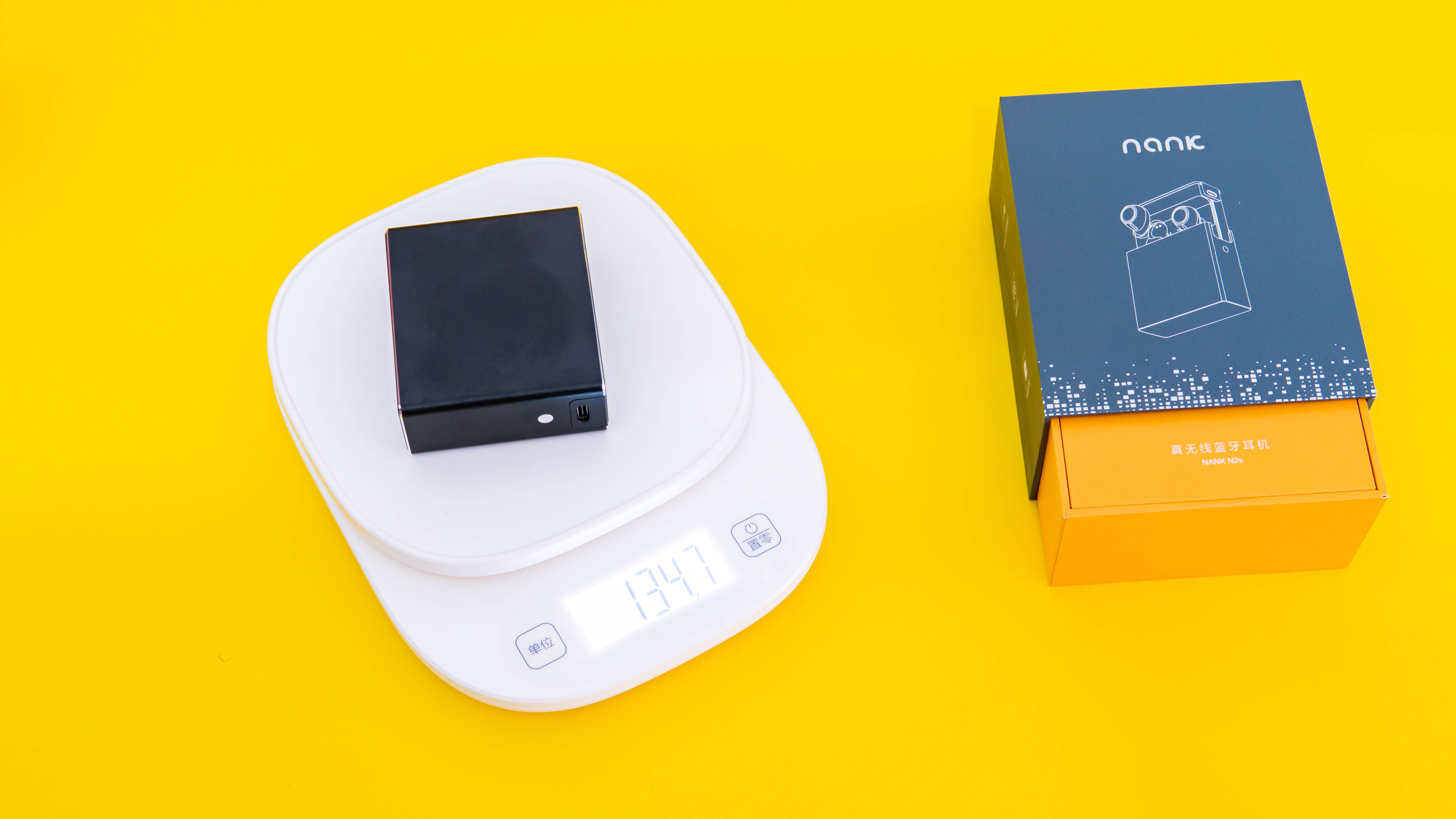 取出耳机剥离外层薄膜,南卡金属的外壳摸起来十分细腻顺滑,拿在手里很有份量,毕竟内置了3000mAh电池注定它的重量不会轻,上称为134.7克,失去的便携度换来了150个小时的超长待机。