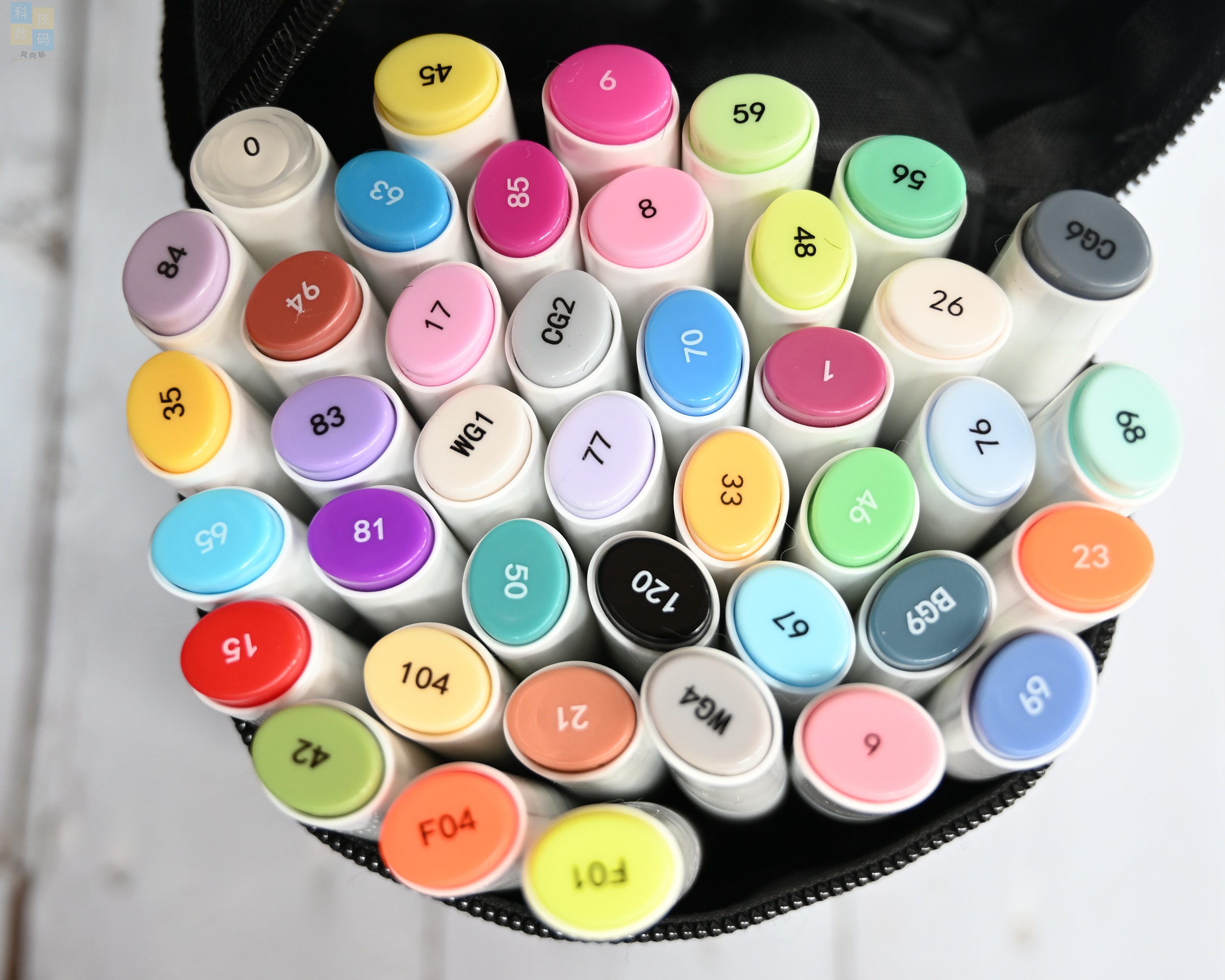 大家平时做手账、笔记的时候,应该都会用到马克笔,目前市面上的马克笔种类很多,区别主要在于颜料、笔头的类型,另外为了不同的使用需要,马克笔的颜色范围也大不相同,最近我就入手了一套ohuhu马克笔,这次我选择的是40色的版本,颜料类型是水彩的,另外还有丙烯颜料的马克笔可以选择。这种成套的马克笔一般都会提供笔袋,方便我们日常的收纳和携带,而且这件笔袋还支持防水,打开收纳袋之后,可以看到马克笔的笔盖上面不仅有对应的颜色,还有相应的色卡号码,方便我们临摹的时候找准颜色。ohuhu马克笔本身采用了椭圆形的笔杆设计,使用的时候感觉很顺手,抓握比较牢固,拿给小孩使用也没问题,而且这款马克笔的做工看上去也不错,没有毛刺之类的瑕疵,或者是异味之类的问题,用起来让人很放心。常见的马克笔一般都是双头设计的,ohuhu马克笔也不例外,我的这款是一边宽头一边圆头的设计,另外还有带弹性软头的版本,选择比较丰富,适合不同的使用需要。我的这款适合用圆头勾勒轮廓,同时用宽头来进行大面积润色,拿来作笔记和画画都很合适。这款马克笔的笔杆上面标注了笔头的类型,并且在圆头这一侧,还有一个灰圈标识,这样可以帮助我们更容易的进行区分。此外这款马克笔的盖子也可以很紧密的把笔头密封后,避免颜料挥发掉。最近用的时候感觉这款马克笔的笔头很耐磨,并且写起来十分顺滑,不干涩,在纸张上面涂抹非常流畅,有些质量较差的马克笔容易起毛,并且用一会儿就会比较干涩,ohuhu马克笔就没有这种问题,所以质量上确实很靠谱。因为这次选的是水彩颜料的,所以叠色效果很不错,而且颜色都很鲜亮,看起来很漂亮。另外这款马克笔在纸上着色之后很容易干,这样就不需在涂完之后再去专门晾晒了,用起来十分方便,同时也可以避免粘的满手颜料。这套马克笔前几天到手后,我也是简单试了一下,用起来确实挺顺手的,特别是ohuhu马克笔的颜色比较准,如果是给孩子临摹绘本,或者是玩填色书都很合适,并且这种水彩马克笔用料也很安全,蹭到手上很容易清洗掉,因此比较值得入手。