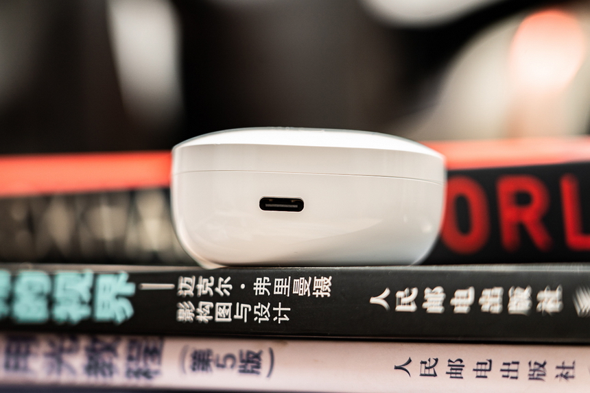 正面的LED指示灯,可以显示充电盒电量状态,只不过需要按一下充电盒内的按键才能亮起,这个逻辑有点……嗯,翻盖即亮多好啊,可以随时了解电量情况,非得按一下,是为了省电吗?