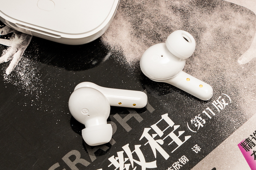 耳机也是纯白配色,至于造型就不说了,大家都懂,其实我觉得这样做也没什么不好,至少在佩戴舒适性方面是不用担心的,随机附送的耳套也可以根据自身耳道的大小来更换。