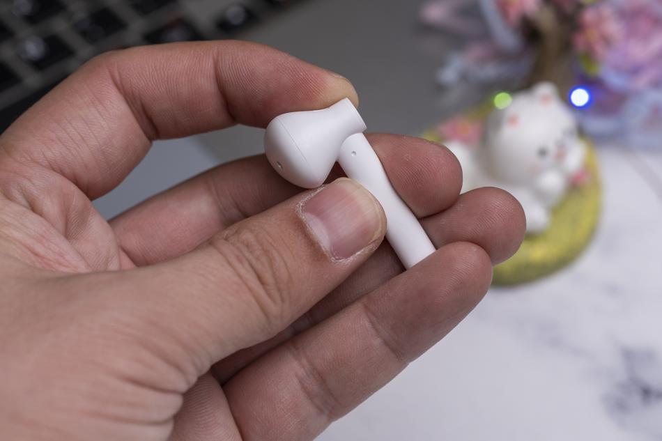 耳机内侧是感应传感器,可以实现智能入耳感应检测,戴上耳机播放,取下自动暂停,这个设计非常方便实用。