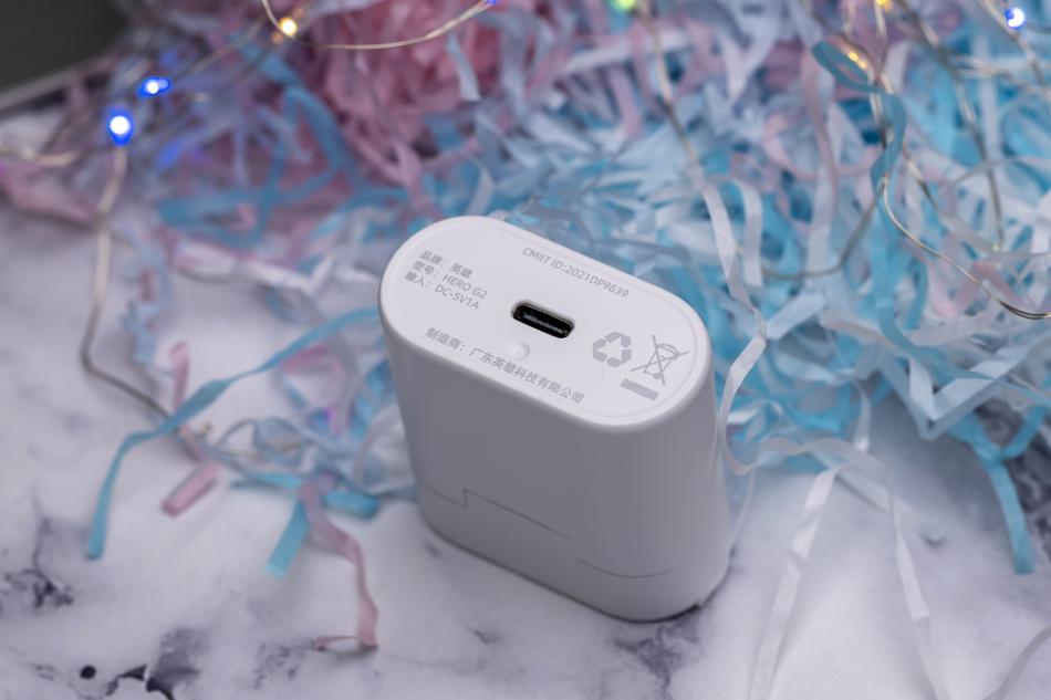 耳机盒底部是type-c充电口,单次续航为4小时,配合380mah充电仓,续航时长达到了30小时,这个续航时长还是非常不错的,外出旅行可以避免续航焦虑,没电后也可以和手机充电器通用。总结:科技发展日新月异,如果不能跟上时代的潮流终究会被时代抛弃,英雄作为老牌音频品牌,如今敢于创新,重归一线市场,勇气和态度值得赞扬。回归这款耳机本身,小巧玲珑的外观、护耳设计、智能入耳感应、30小时的续航时长都非常亮眼,不到二百的售价性价比出色;缺点就是配色有些单一,如果能添加国潮元素就更好了,总之相信品牌的历史沉淀,选择英雄耳机没错。