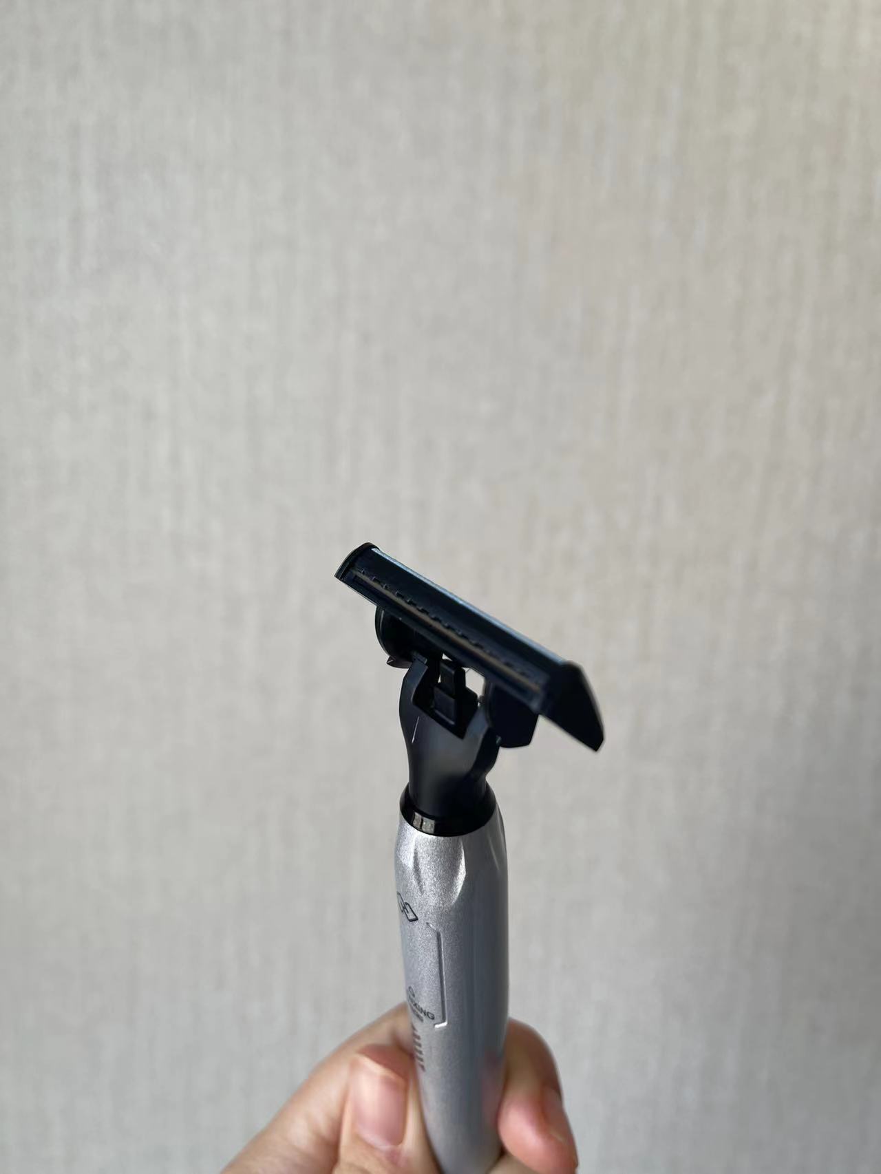 刀头背部还配有一层L型的精修造型刀片,方便我们修理鬓角或者为胡须做造型。