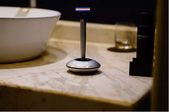 这套刮须刀最特别的地方就是这套焕醒星洞小飞碟剃须刀底座采用了磁悬浮技术,当剃须刀顺手放置在底座上后,剃须刀能自主屹立在底座上而不倒,就算是用力摇摆,剃须刀还是会摇摇晃晃最终稳定地站立着,就像一个不倒翁一样,这也就是我所说的它好玩的地方。