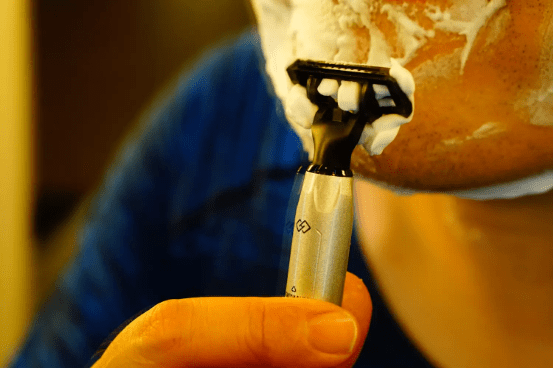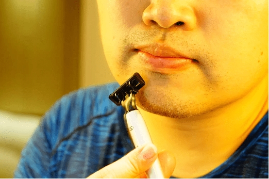 剃须刀把采用了上宽下窄的设计,比起传统的方形刀把使用时更舒服自然,转换去致任意角也不会铬手,刮起胡须来也更得心应手了。(动图)