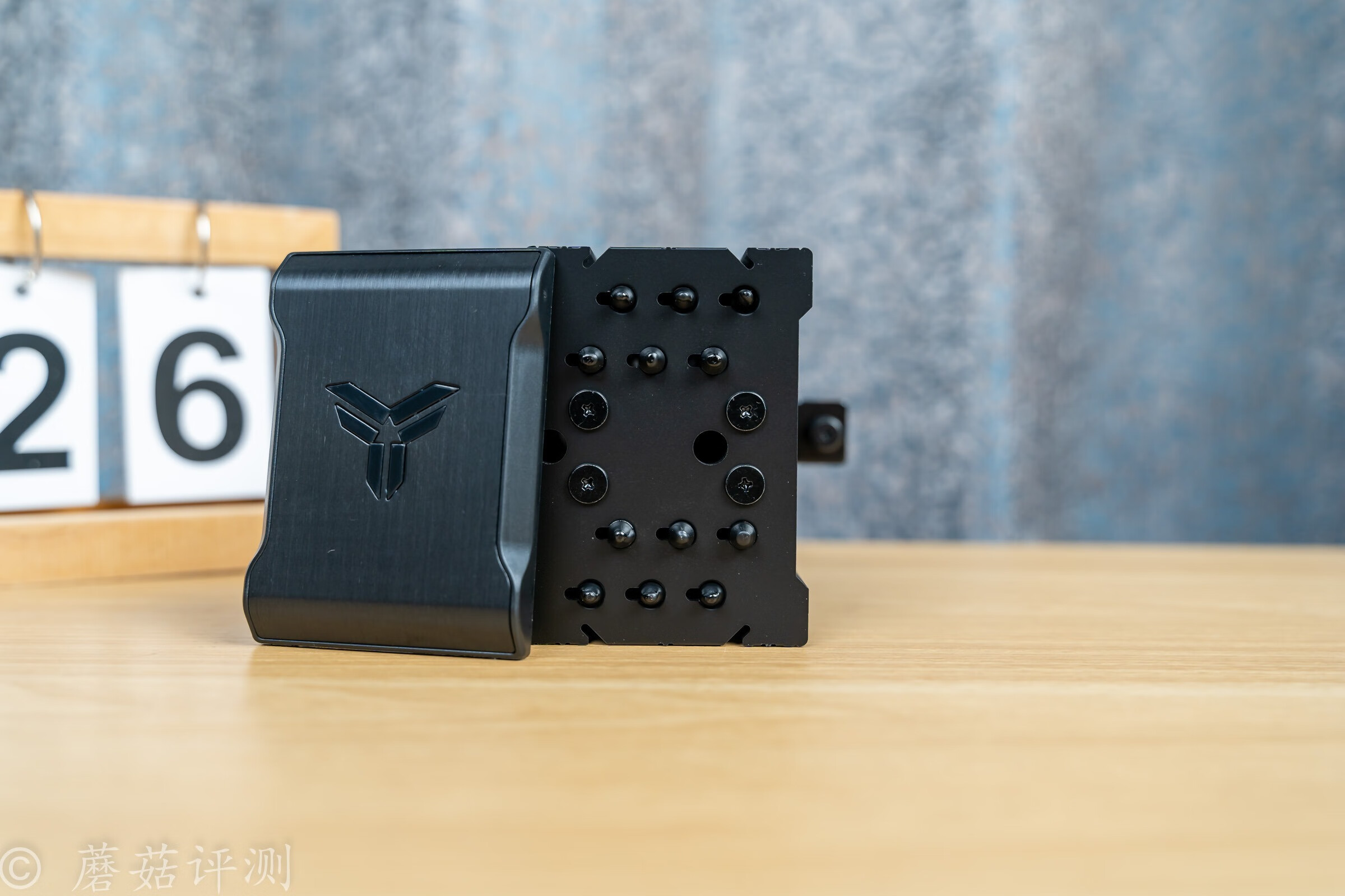 ▼盖板采用磁吸固定,拆装很方便。盖板底部有螺丝固定孔,可以从孔内伸进去螺丝刀,拧紧散热塔底部的固定螺母。