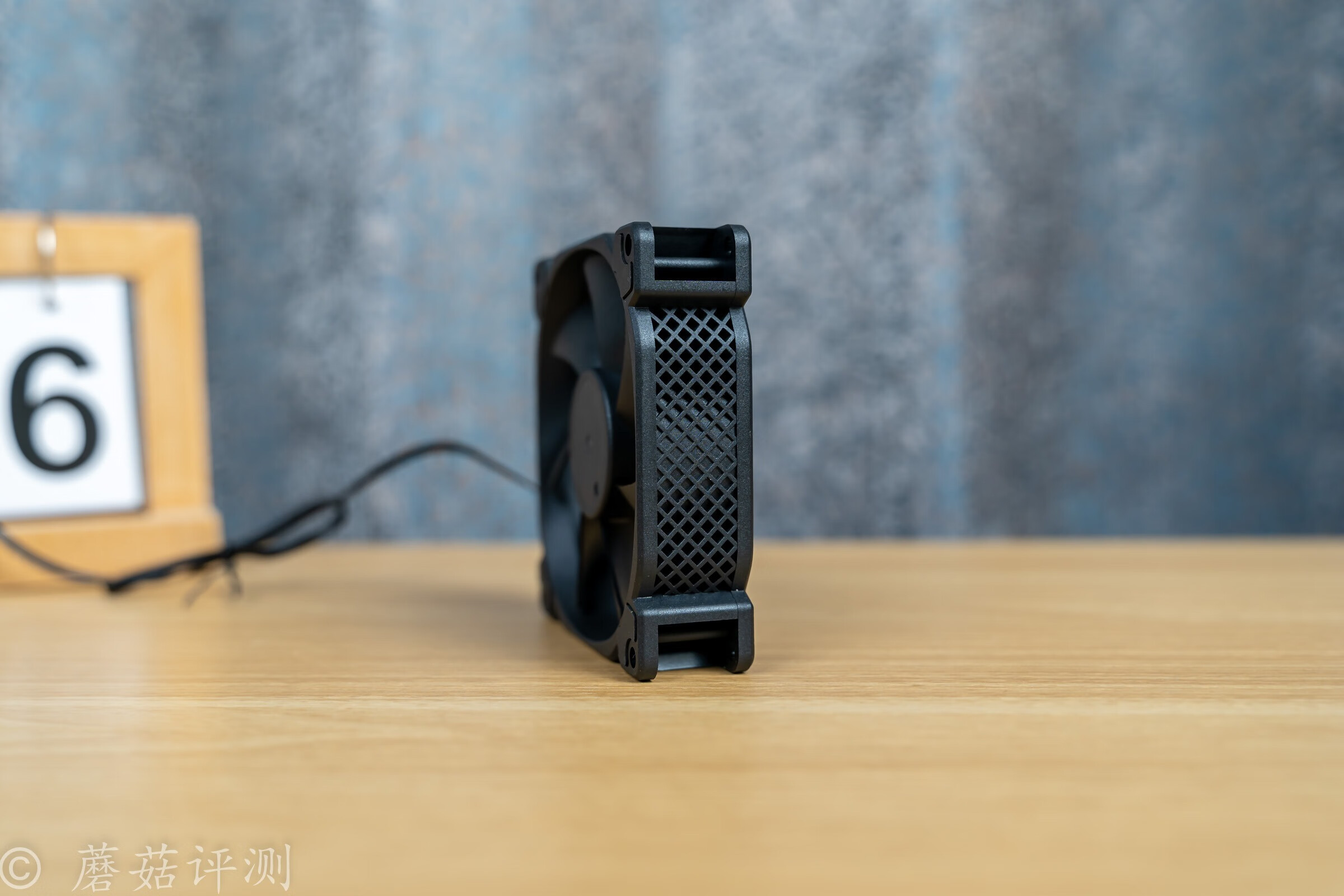 ▼风扇的厚度是标准厚度,25mm左右,侧面还有密集的加强筋。