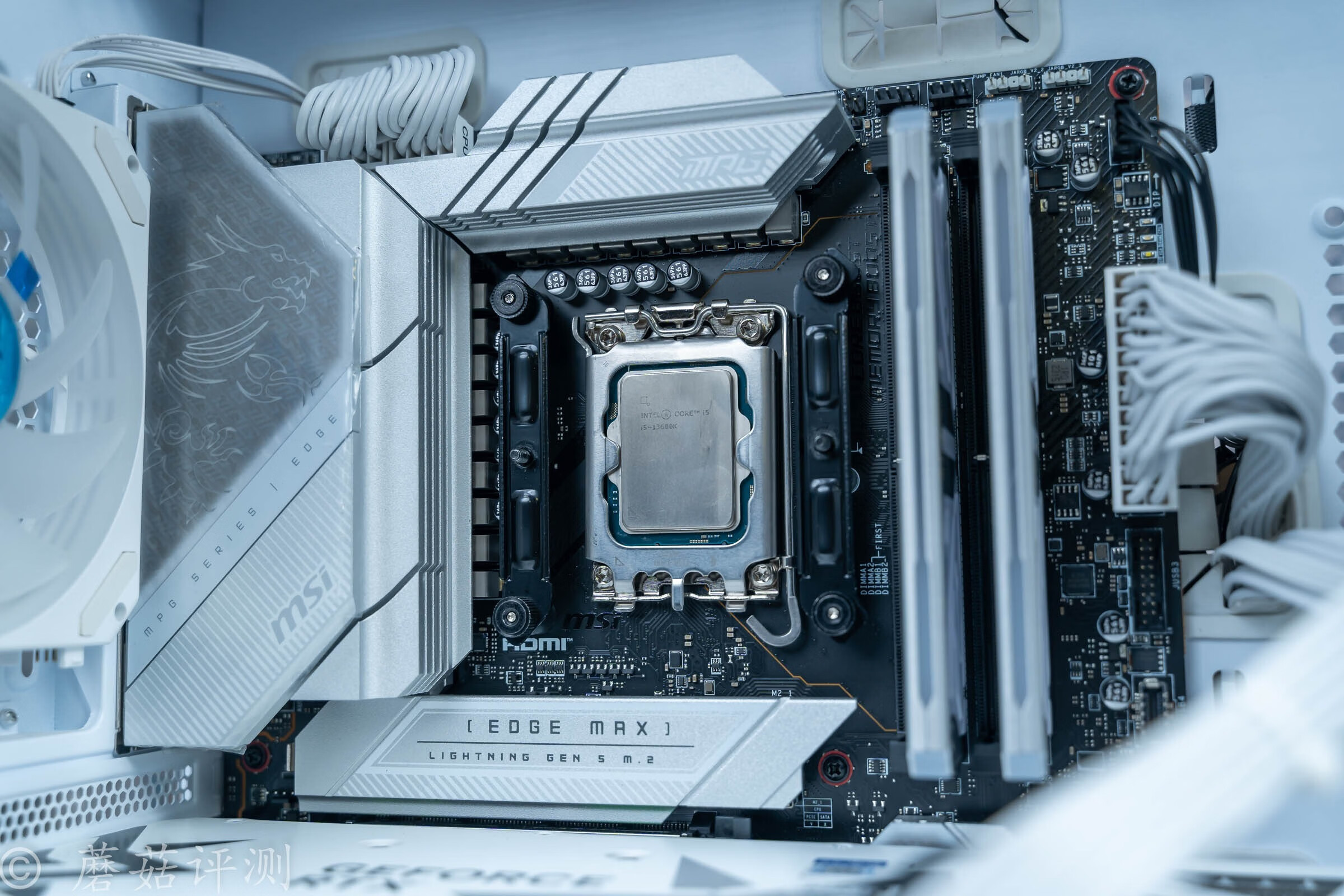 ▼固定扣具设计的不错,装机很方便,处理器是13600K,主板是微星的Z790刀锋MAX。
