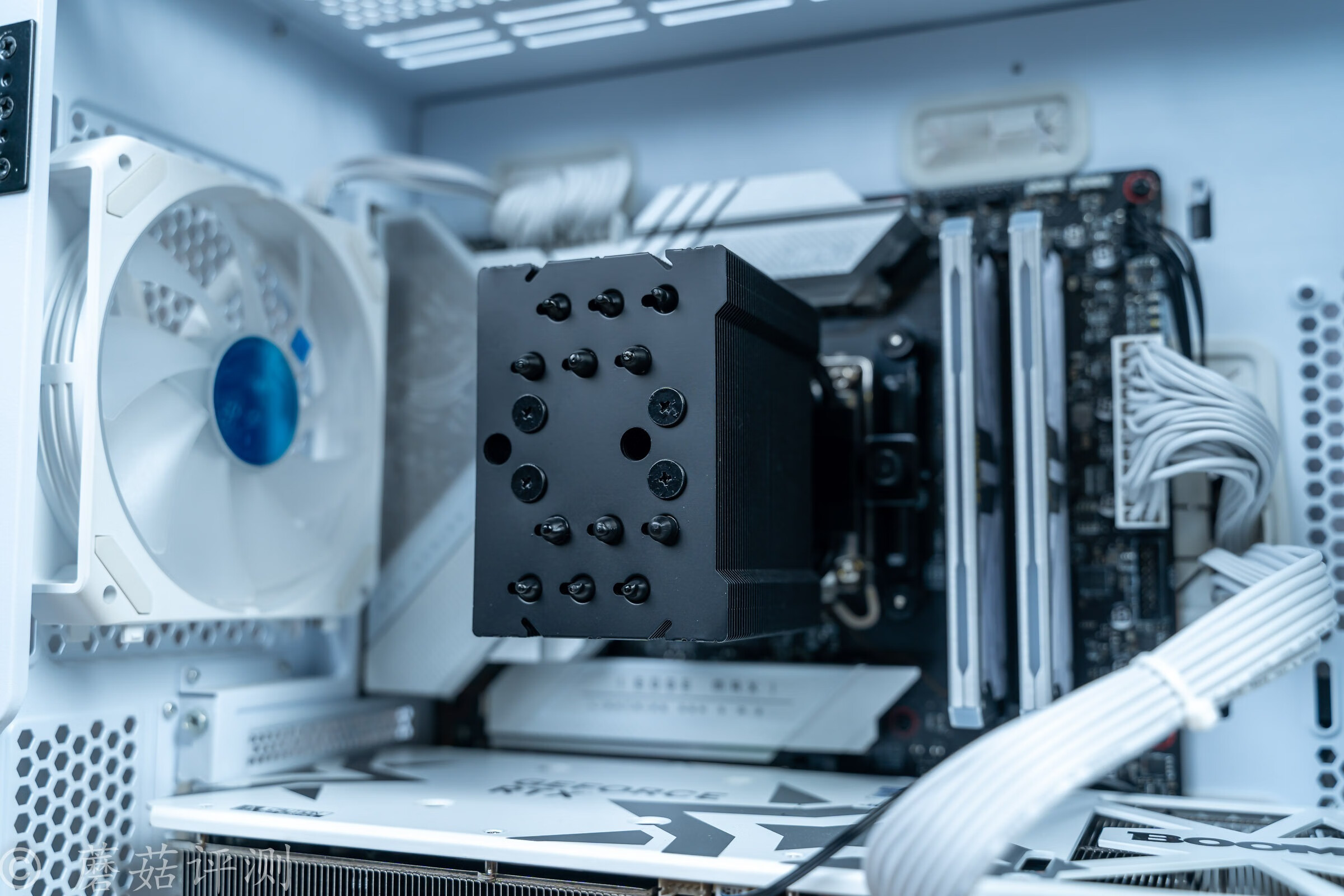 ▼最后盖上磁吸盖板,把散热风扇固定好,散热塔就安装完成了。