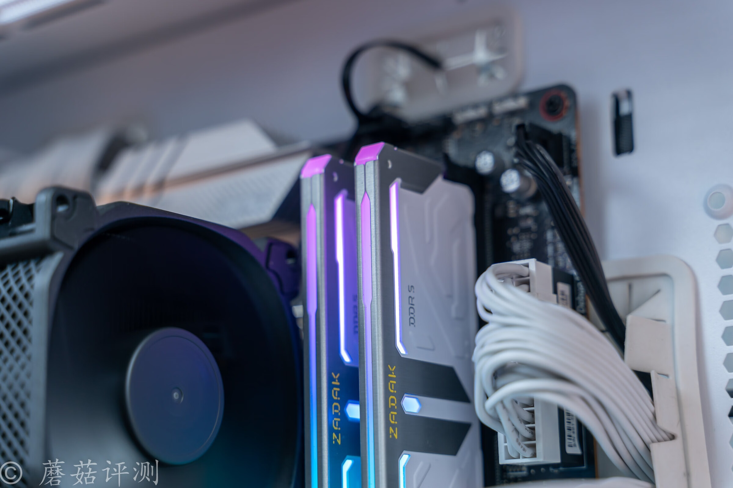 ▼内存用的是宇瞻的ZADAK的SPARK内存,这套内存的颜值很漂亮,金属马甲很有设计感,侧面金属马甲大面积的采用白色烤漆处理,顶部部分采用拉丝处理,中间点缀了一些多段式的RGB灯带。