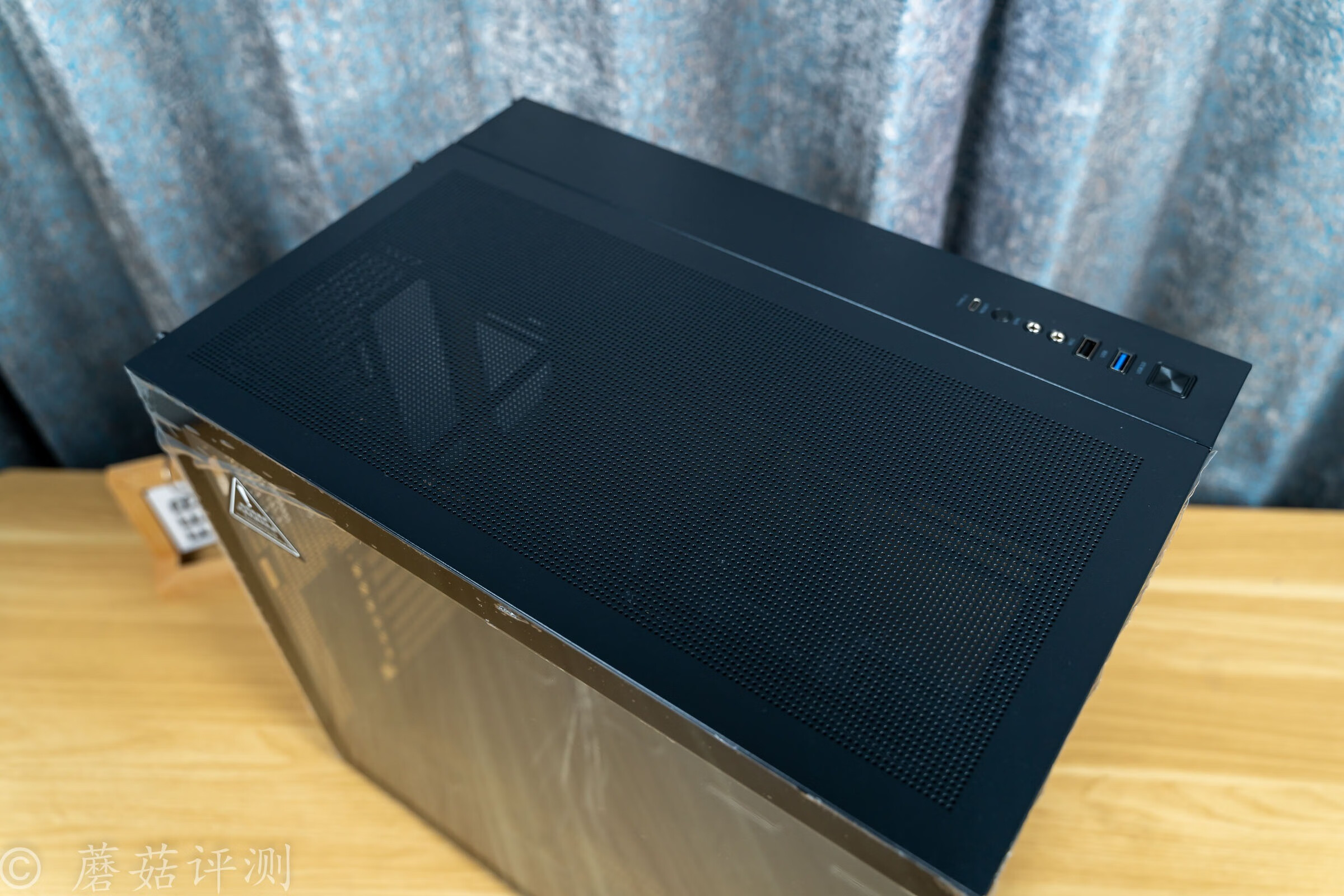 ▼机箱顶部,有大面积的金属冲孔网,用于散热。
