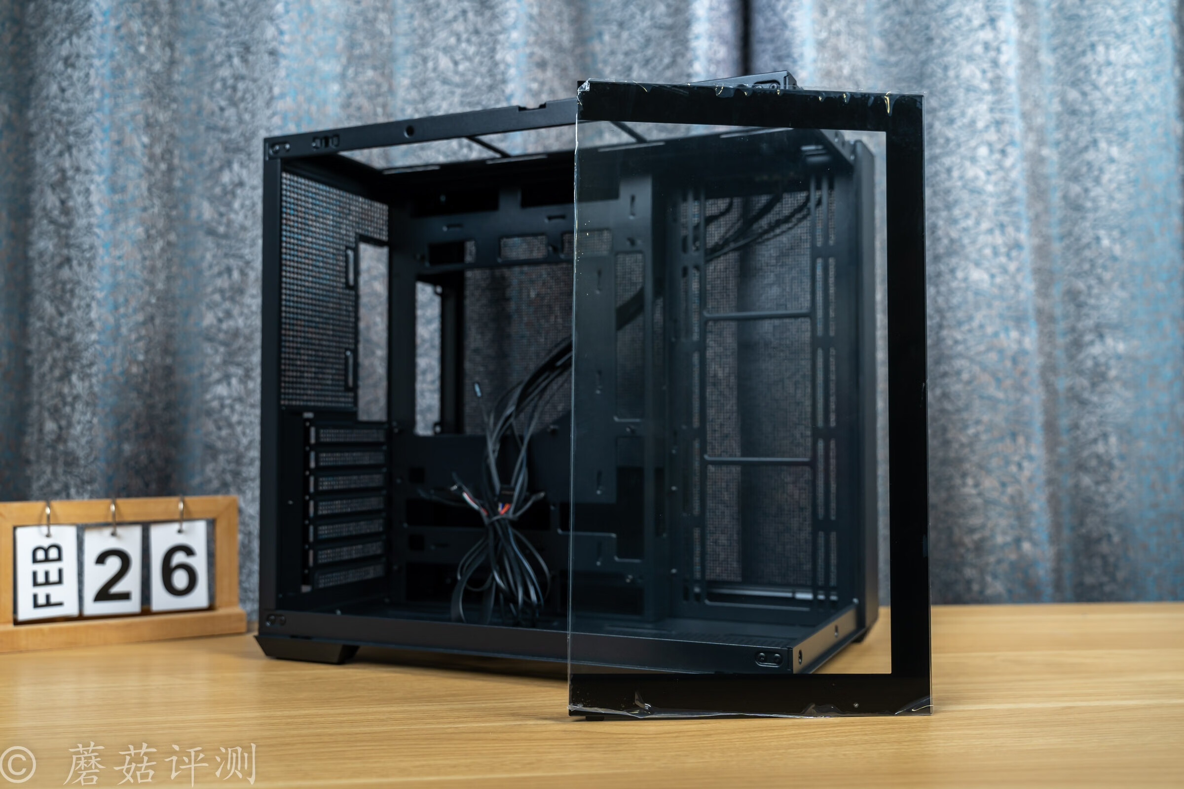 ▼机箱侧面有大面积的玻璃侧透,占据了机箱侧面所有的面积。