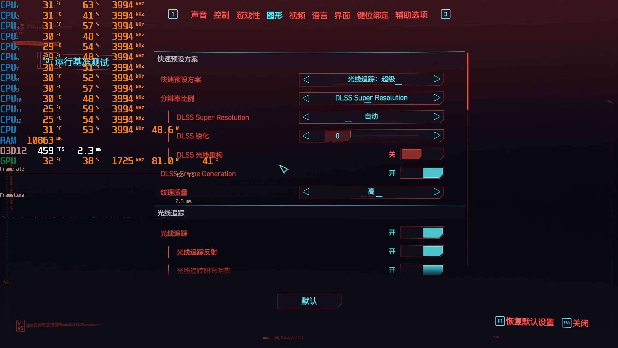 ▼赛博朋克2077,2K分辨率,光追超级特效,大力水手DLSS自动。