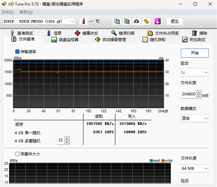 ▼跑个200GB的持续读写测试,速度表现非常稳定,读取速度稳定在1900MB/s左右,写入速度稳定在1500MB/s左右,持续读写测试非常稳定。