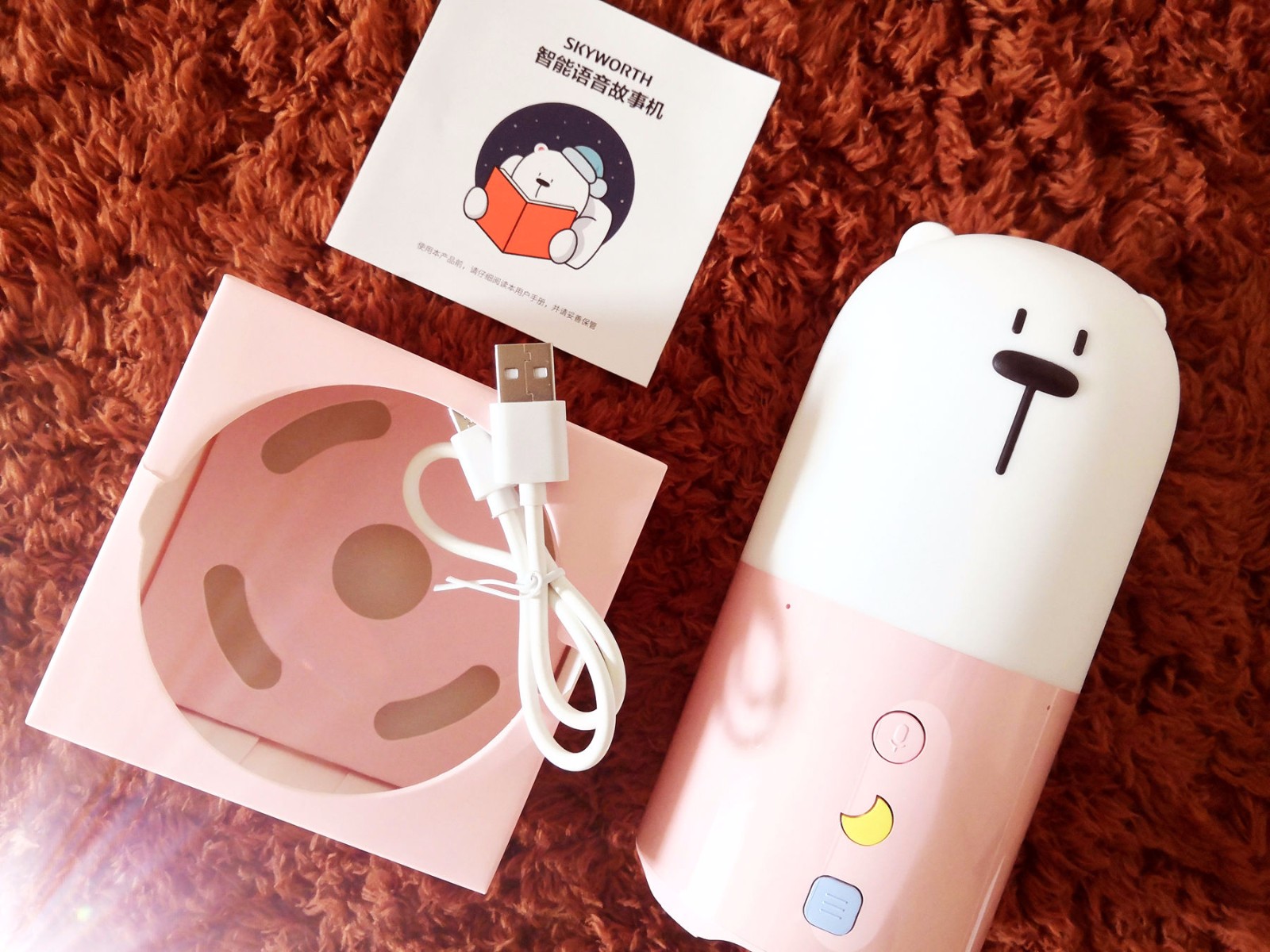 小湃是创维孵化的新生品牌,一直遵循“科技、极简、轻奢、新潮”的品牌理念和“IP+科技+生活”的产品思路,其将湃熊作为品牌IP形象。创维小湃AI故事机Pro有天空蓝、公主粉2种颜色,一个适合男生,一个适合女生,此次小编拿到的的是公主粉,很适合我家小公主了,从包装可看到创维小湃AI故事机Pro机身主要元素为一个萌萌哒的小熊,特别在包装上产品名旁一个小熊的图案。产品正面透明化设计,可直览产品外观,背面是产品信息,侧面是产品智能陪伴、灯光陪伴、精选故事、语音控制四大特色功能特点,底部,产品的使用注意事项,毕竟是给小孩子用的东西,一点要悉心!