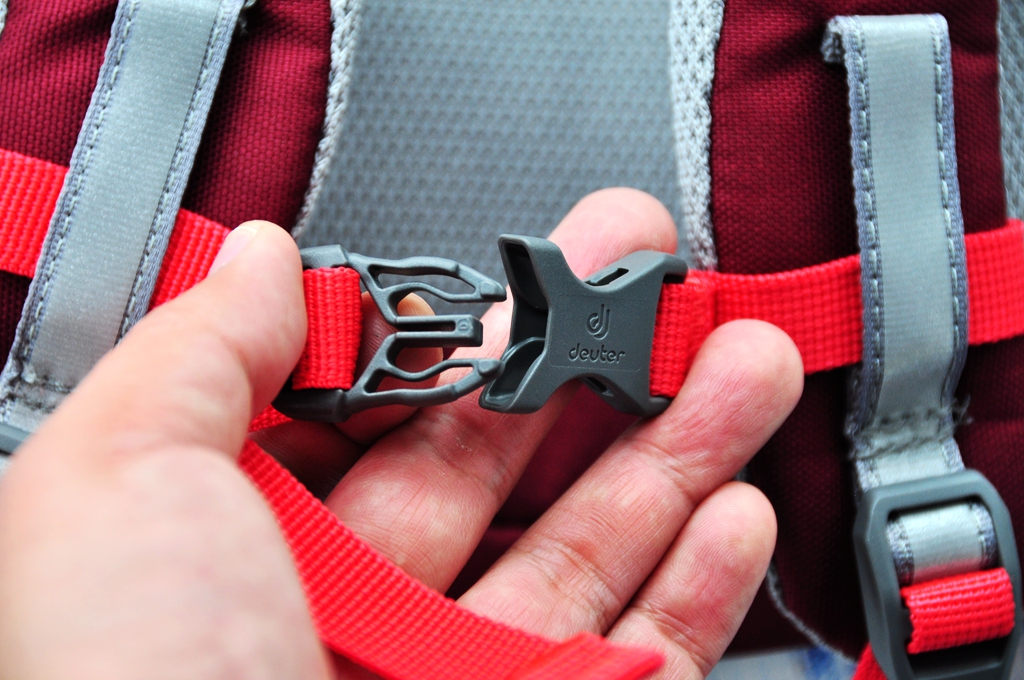在Deuter KIKKI儿童背包的肩带上方可调节肩带底座理想地位于肩胛骨之间的位置,另外整个肩带的长短也可以通过底下的带子收紧肩带,肩带与胸带之间的合理调整能达到稳定舒适的背负效果。而腰带的作用主要是在骑车时,用腰带轻轻固定能使背包不摆动。