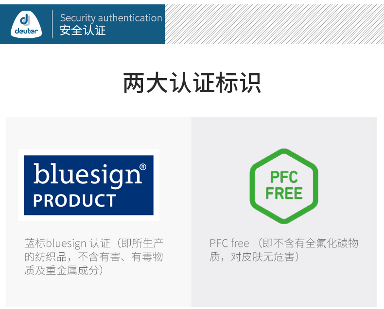 背包外观就简单介绍到这里,外观和设计方面都挺不错的,多特学生护脊背包选材和用料上都是采用蓝标bluesign和PFC free认证,不含有害、有毒物及重金属成分,实际接触产品也没有异味。