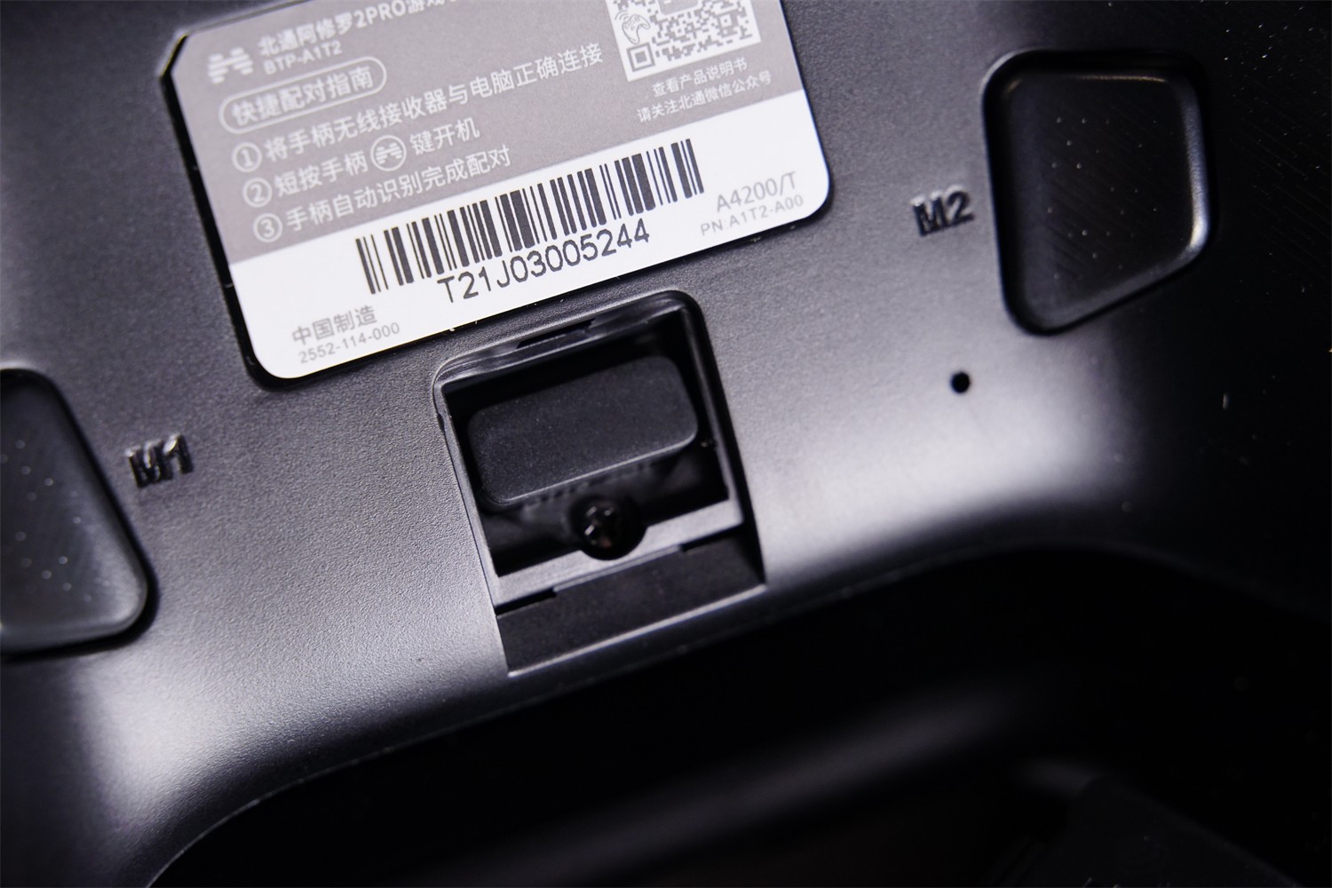 阿修罗2Pro也保留了前作一个很好的设计,就是在手柄机身上设计了无线连接器的收纳仓,甚至还给它加了个小盖子,这样一来就再也不怕粗心的同学一不小心就把连接器给弄没了。