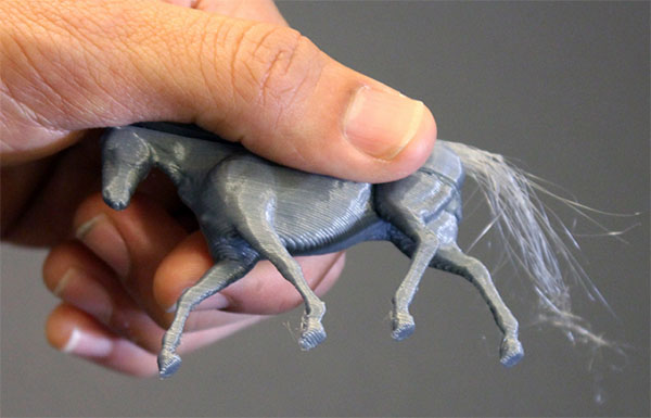 这套系统使用基于FDM的3D打印机,这是大多数消费级3D打印采用的技术,但是编制了特别的程序,让它挤出一小点塑料然后进行拉丝。拉丝可以在成排进行,也可以在一个表面随机散步。用户可以选择想要创建毛发的区域,设置毛发的参数,如长度,厚度,密度等,程序会据此控制机器进行拉丝。